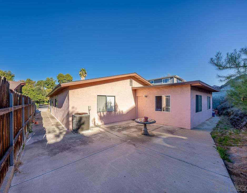 Welcome to this charming single-story home, thoughtfully designed for comfort and convenience. Featuring 4 spacious bedrooms, the open floor plan seamlessly connects the kitchen to the dining and living areas, complete with a cozy fireplace. A 300 sq ft bonus area, filled with natural light, adds extra space for your needs. This home is equipped with a new roof and an new AC unit. The primary bedroom is generously sized and can also be converted into an income-generating space. The backyard is enhanced with beautiful granite rock and cement for low-maintenance outdoor living, plus a spacious back patio ideal for entertaining. Theres ample parking with space for RV parking or up to 6 vehicles. Ideally located in Lakeside, it offers easy access to outdoor recreation, including hiking, fishing, and boating at nearby Lake Jennings and El Capitan Reservoir. With a rural atmosphere, equestrian culture, and a family-friendly community, this home is an excellent investment. Plus, its proximity to San Diego and major highways makes commuting a breeze.